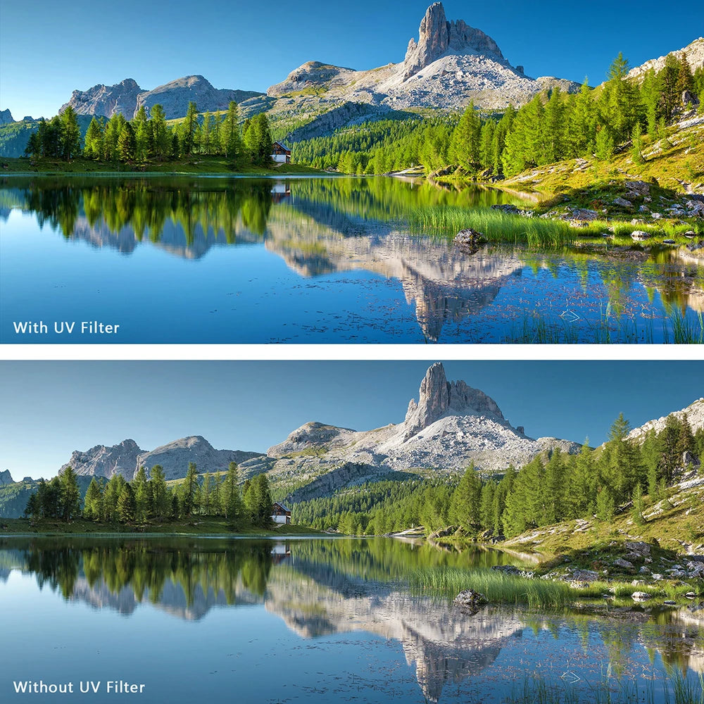 - UV Light Reduction: UV filters were originally designed to block ultraviolet (UV) light. In film photography, UV light could cause a haze effect, especially at high altitudes or in coastal regions. Although digital sensors are less sensitive to UV light, the filter still helps reduce atmospheric haze, resulting in clearer and sharper images, particularly in landscapes.
