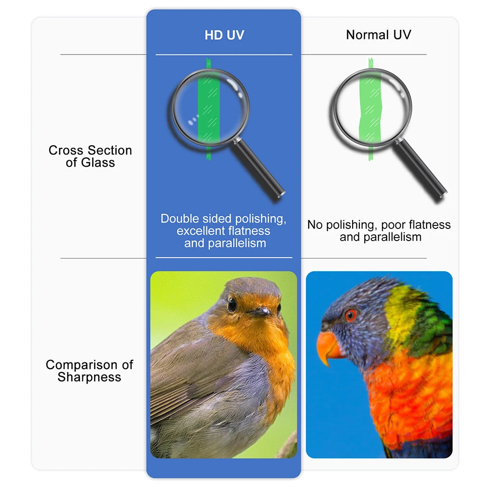 - High Definition Optical Glass: Crafted from high-quality optical glass, this filter maximizes light transmission while maintaining superb clarity.