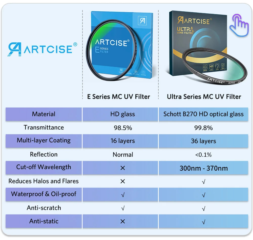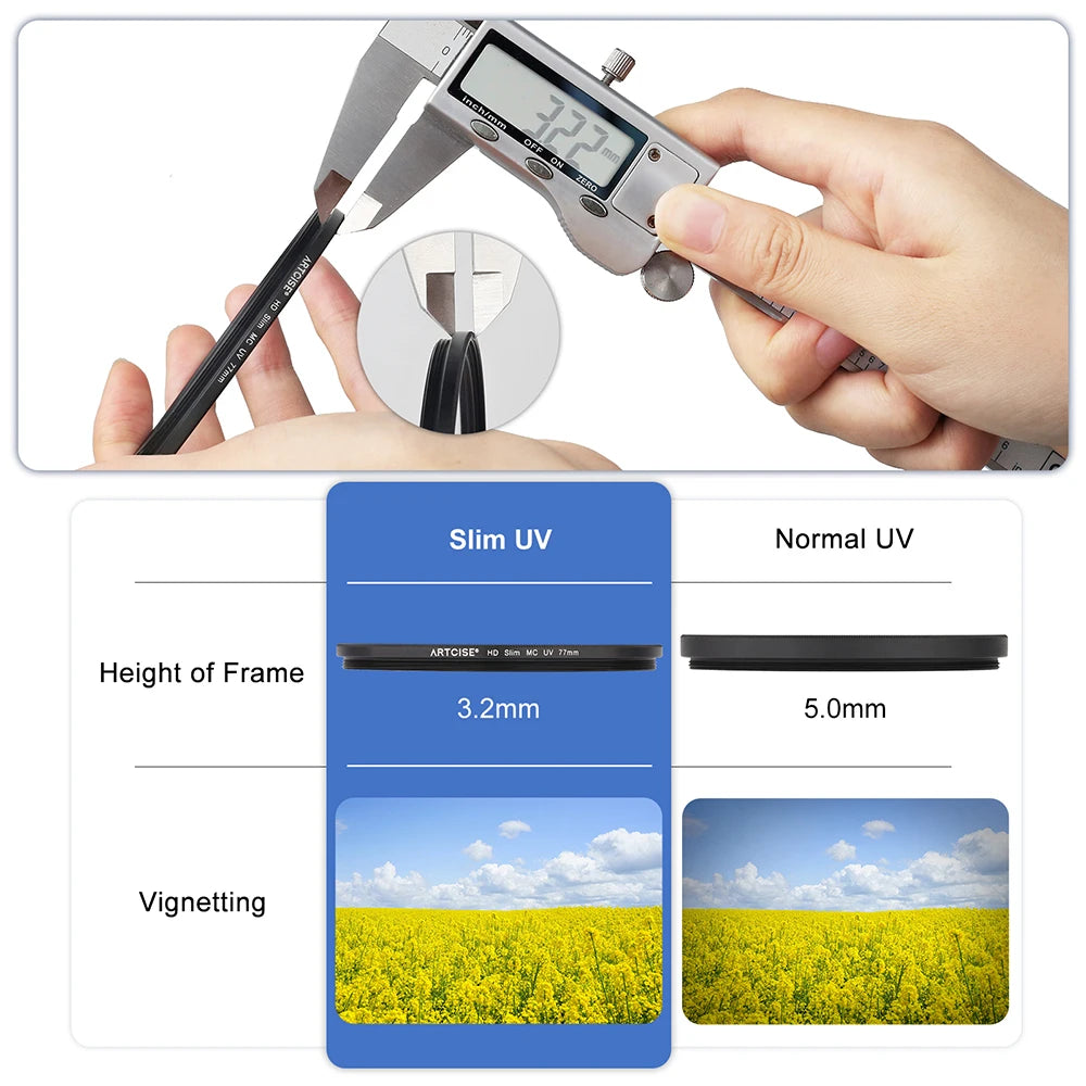 Whether you're a hobbyist or a professional photographer, the Artcise UV Lens Filter MC HD Ultra Slim offers unparalleled performance and protection. Elevate your photography to new heights with this essential accessory. Invest in Artcise and see the world through a lens of clarity and brilliance.