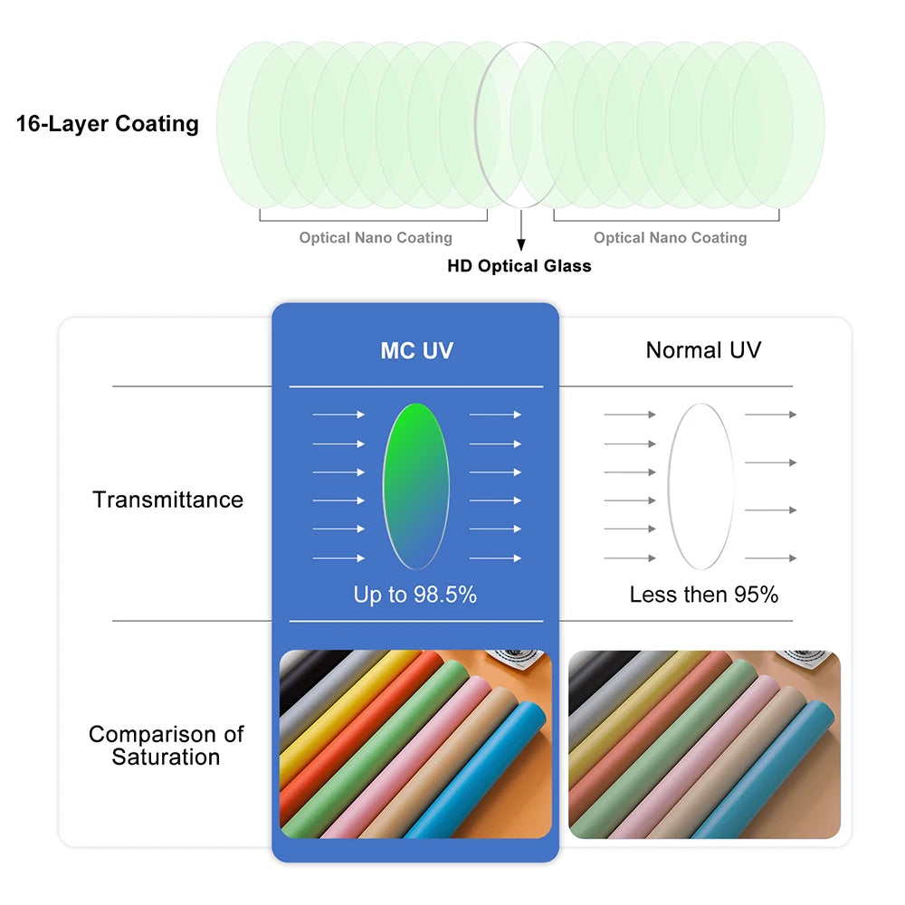 - High Light Transmittance: With 16 layers of multi-coating, the filter achieves an impressive 98.5% light transmittance. This minimizes reflections and ghosting, giving your images enhanced contrast and vivid colors.
