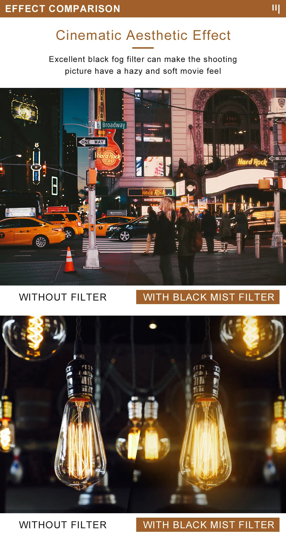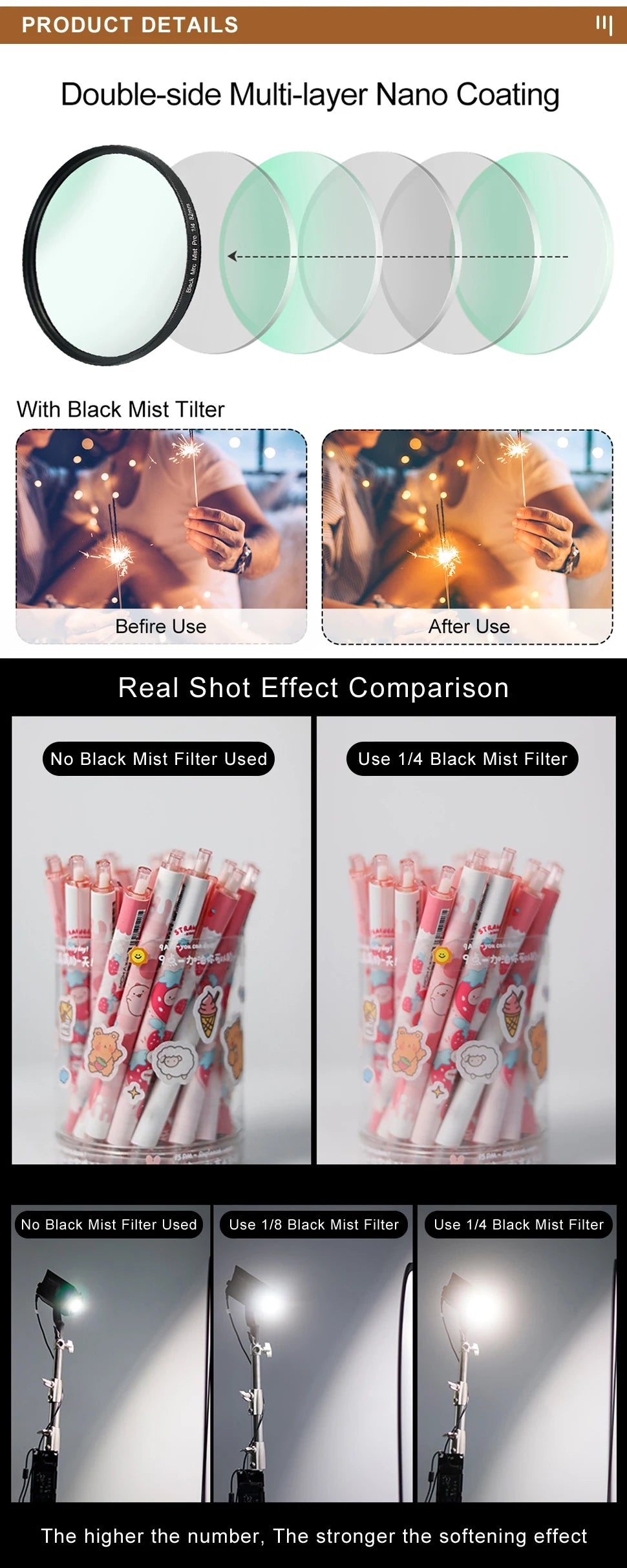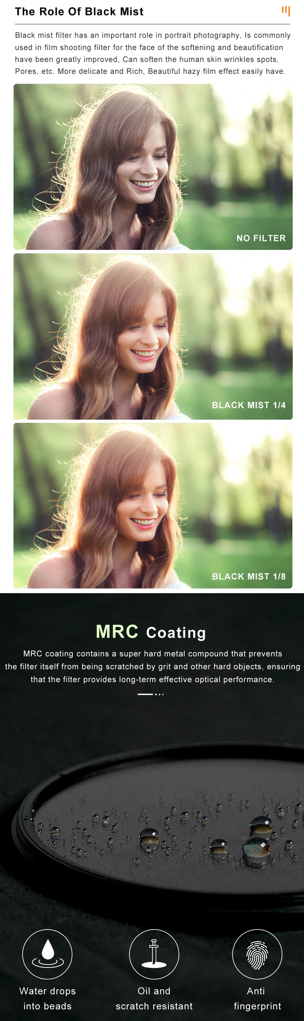 Don't miss out on the opportunity to elevate your visual storytelling. Order your Black Mist Diffusion Camera Lens Filter today and start creating stunning, cinematic portraits and videos.