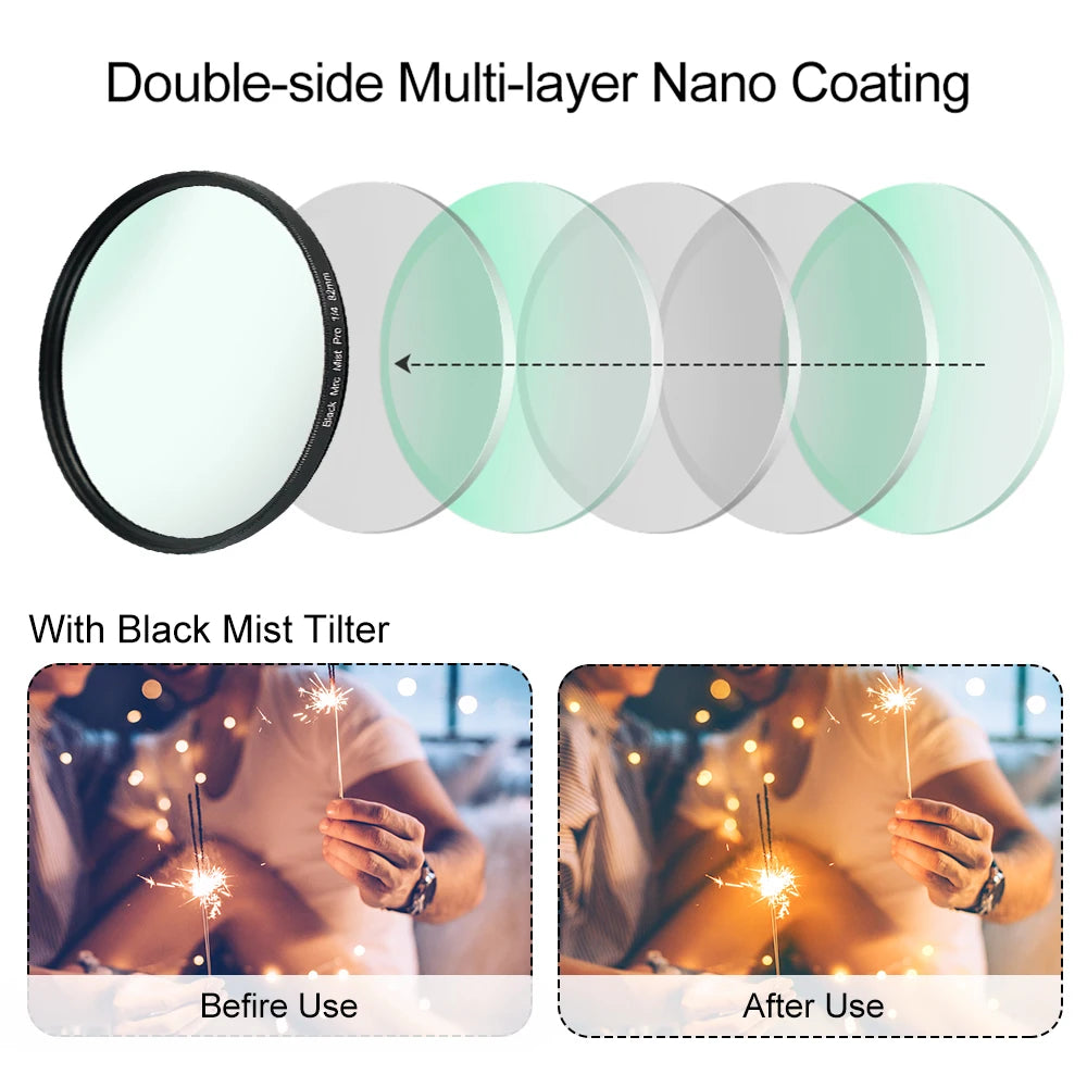 The Black Mist Diffusion Camera Lens Filter is a must-have for photographers and videographers aiming to add a dreamy and cinematic quality to their work. Its high-quality construction, advanced coating, and versatile applications make it a valuable addition to any camera kit. Here’s why you should consider this filter: