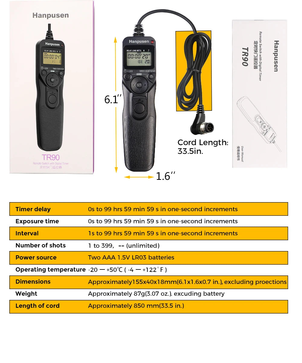 Discover the technical specifications that make this intervalometer an indispensable tool for photographers:
