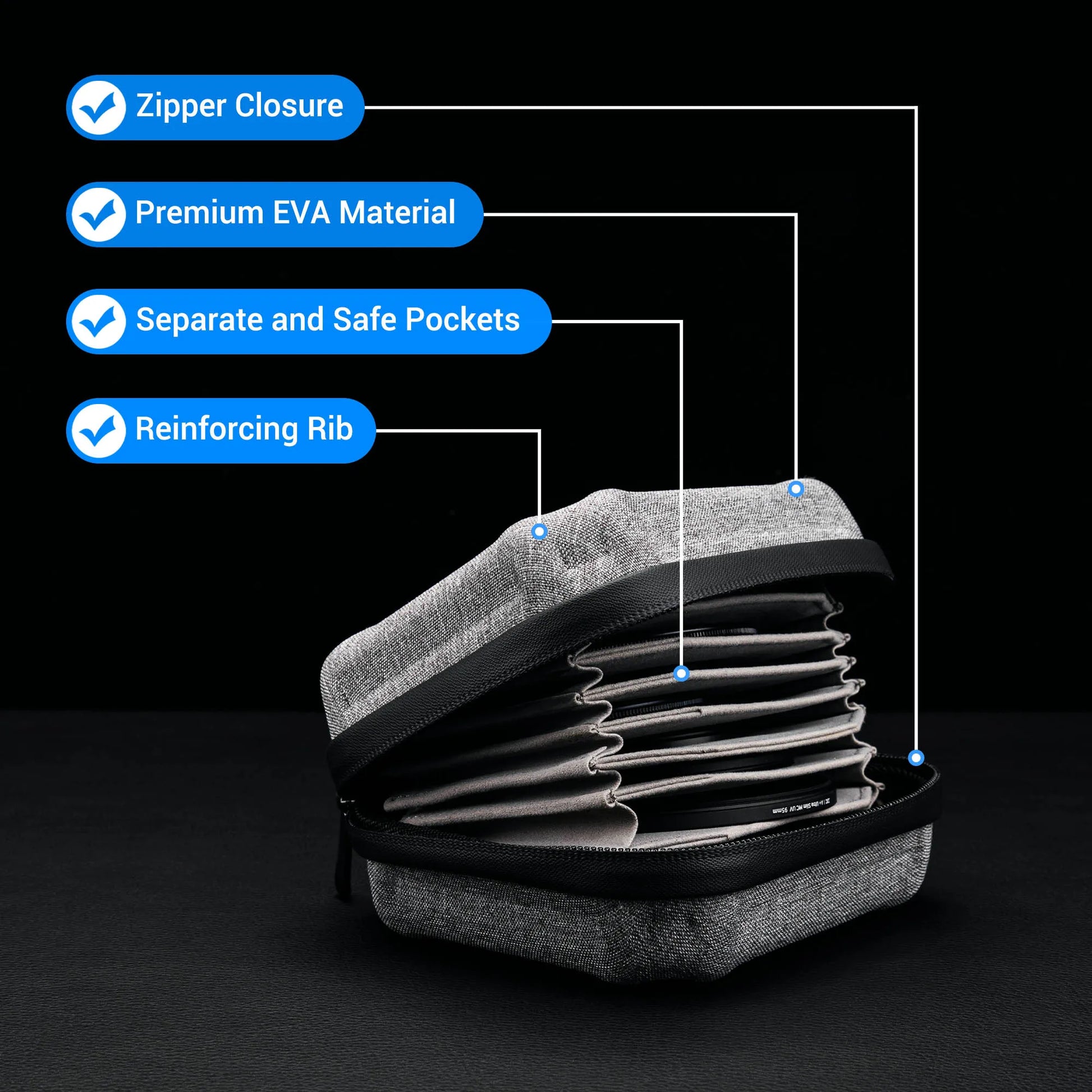 Constructed with a durable EVA exterior and featuring a reinforcing rib design, this filter pouch provides robust protection against dust, shock, and water splashes. The sturdy materials shield your filters from external elements, allowing you to use them confidently in diverse environmental conditions without compromising on performance.