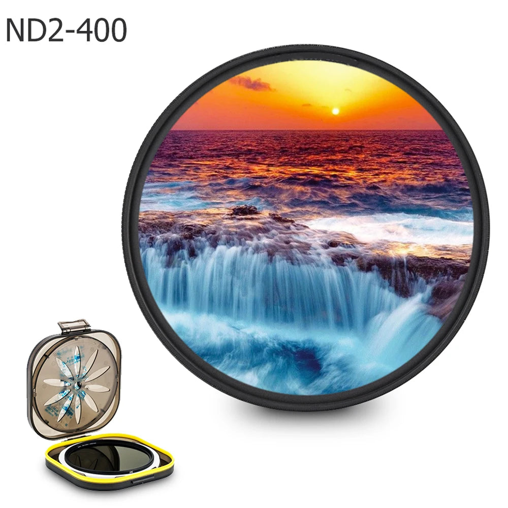 - Adjustable ND Range: Offers a broad range of neutral density from ND2 to ND400, allowing photographers to smoothly adjust exposure levels by simply rotating the filter. This flexibility is ideal for capturing scenes with varying light conditions without changing the aperture or shutter speed.