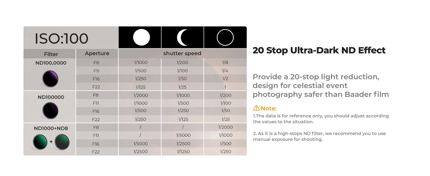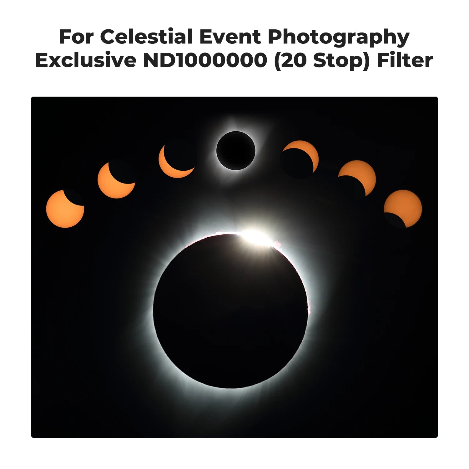 Discover unparalleled precision in solar photography with the K&F Concept ND1000000 Solar Filter. This advanced 20-stop neutral density filter is meticulously engineered to reduce solar light without compromising color fidelity or sharpness. Ideal for both solar photography enthusiasts and professionals, it ensures detailed capture of the sun's surface and solar eclipses.
