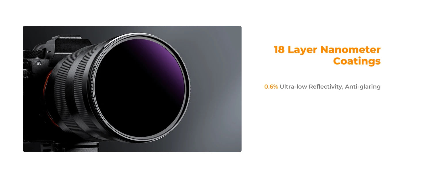 Constructed from premium optical glass and enhanced with an 18-layer nano coating, the ND1000000 filter minimizes reflections and ghosting while protecting against scratches, water, oil, and dust. This advanced coating technology ensures clarity and contrast, allowing you to achieve professional-grade results in challenging shooting environments.