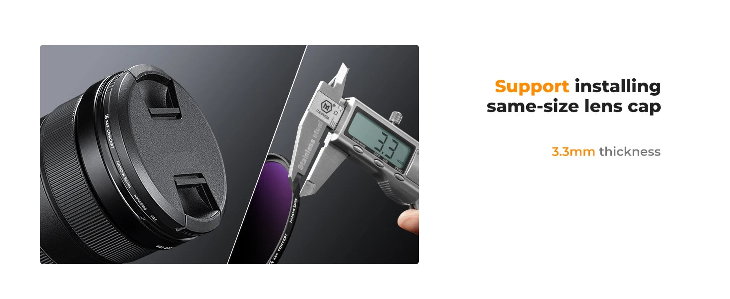 The knurled filter ring provides a secure grip, facilitating easy installation and removal from your lens. Its lightweight and ultra-slim aluminum alloy frame not only prevents vignetting but also guarantees durability for long-term use in various shooting conditions.