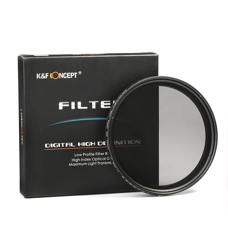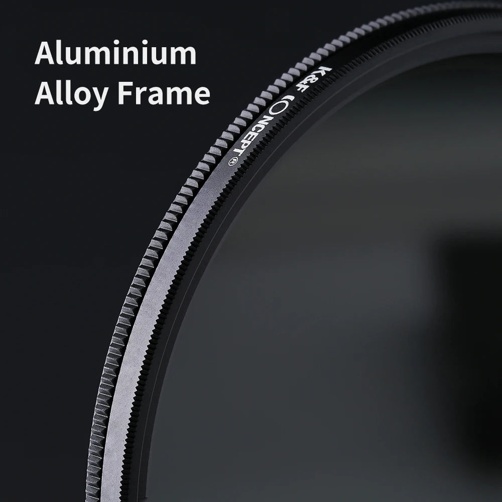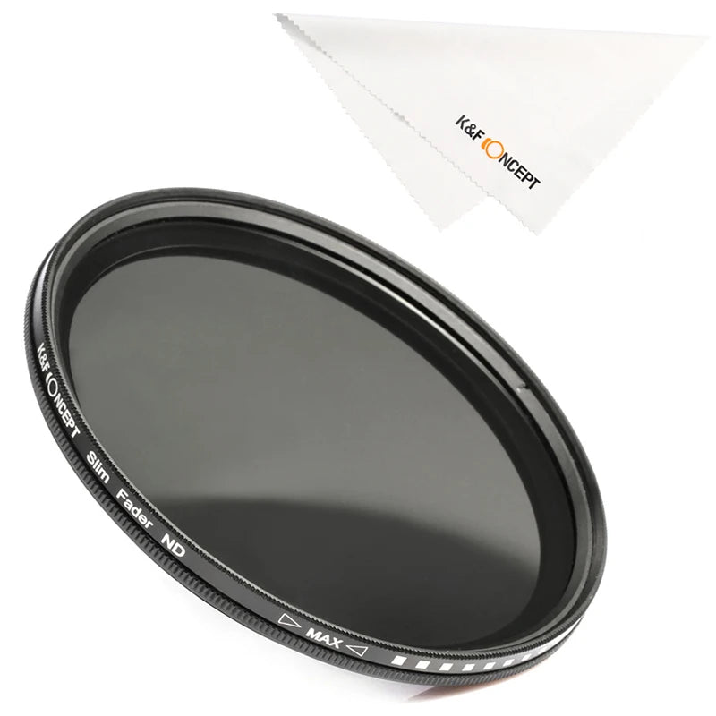 Crafted by K&F CONCEPT, renowned for high-quality optical products, this variable fader ND filter comes in a wide range of sizes from 37mm to 82mm. It's built with precision using professional optical glass, ensuring clarity and durability in every shot.