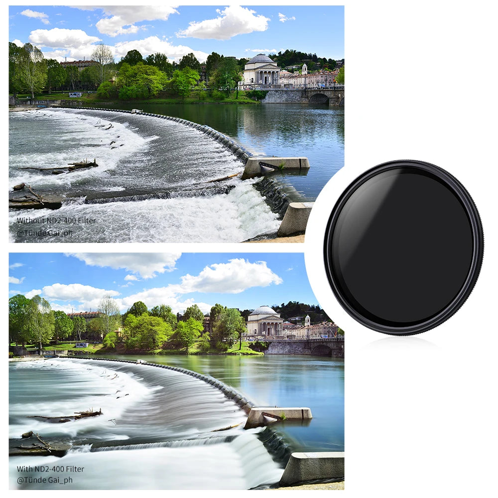 5. Trusted by Photographers: Renowned for its reliability and performance, the K&F Concept Variable ND2-ND400 ND Lens Filter is favored by professionals and enthusiasts worldwide. It's a must-have addition to any photographer’s toolkit, enhancing creative possibilities and delivering exceptional results.