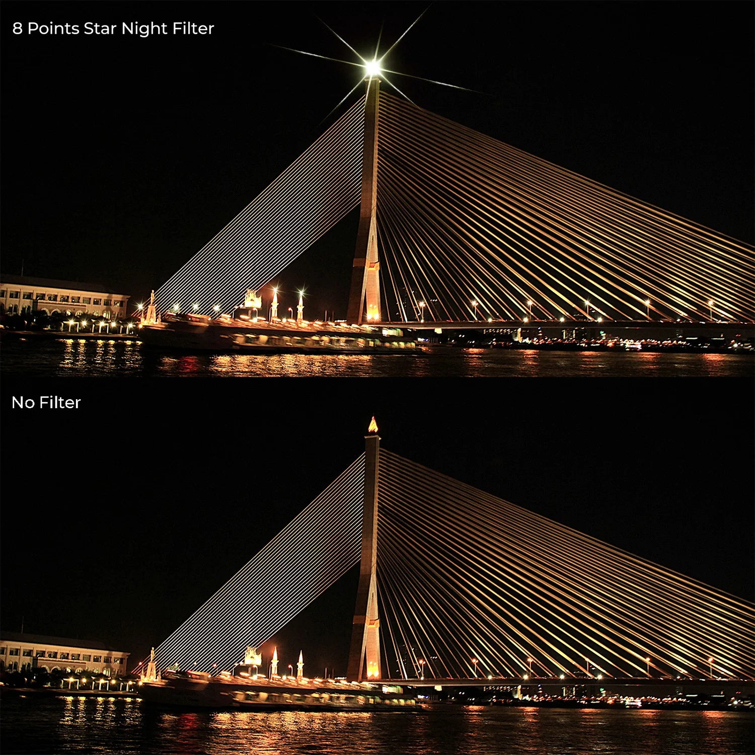 Experiment with creative compositions and artistic expressions using adjustable star effects. From landscapes to architecture, the filter offers endless opportunities to enhance visual storytelling and create compelling images that stand out with unique starburst details.