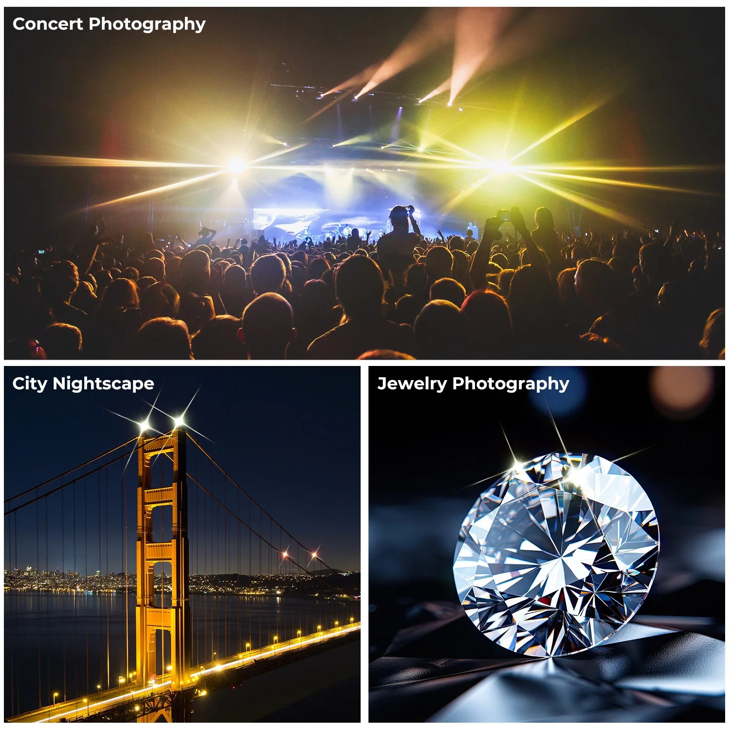 Highlight the brilliance of reflective surfaces in product photography with enhanced starbursts. Whether capturing jewelry, crystals, or metallic objects, the K&F Concept Variable Star Filter enhances light reflections, making them appear more vibrant and appealing in your images.