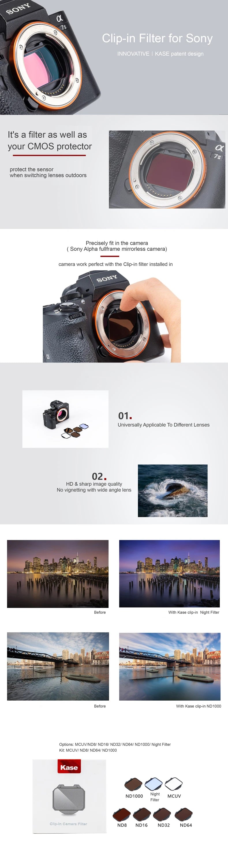 Kase Clip-in Filter For Sony Alpha Camera - CMOS ( MCUV / ND / Neutral Night / Dream )
