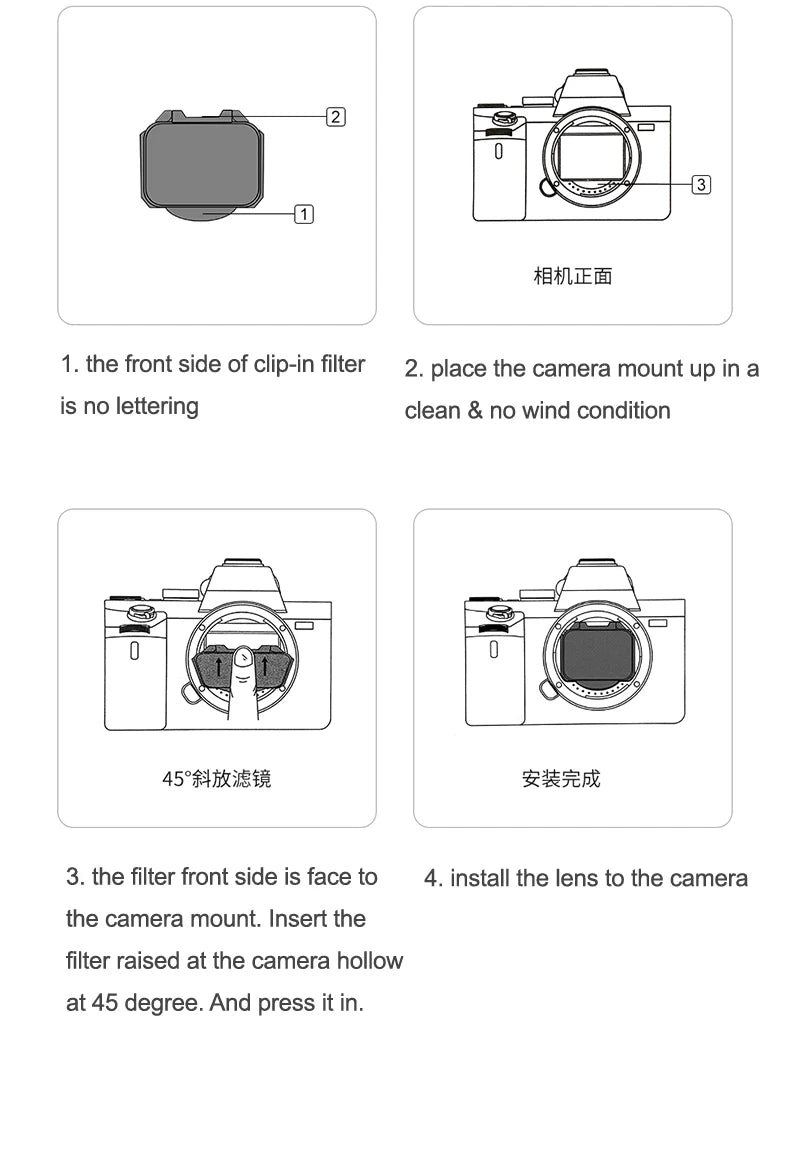 Weighing only 3.3g, this clip-in filter reduces the weight of your camera gear. Its design allows compatibility with all types of lenses, including telephoto zoom, super-wide angle, and fisheye lenses, ensuring versatile shooting capabilities.