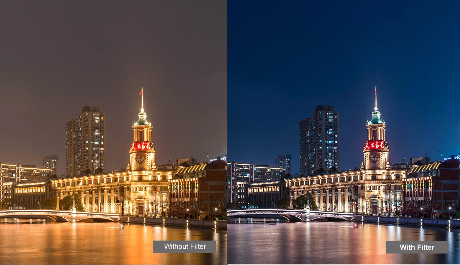 - Functionality: Blocks harmful artificial light sources to restore true colors in night scenes, particularly effective against light pollution from mercury vapor, sodium, and low CRI index street lights