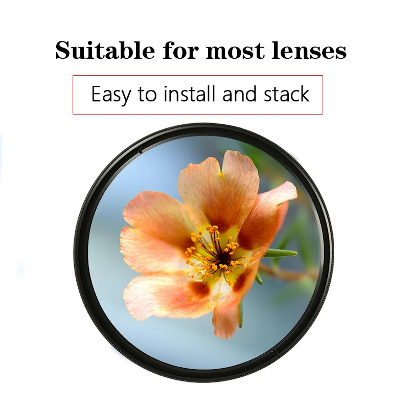 The Macro Close Up Filter is available in sizes ranging from 37mm to 82mm, ensuring compatibility with a wide range of DSLR camera lenses. Whether you own a Canon, Sony, Nikon, or other DSLR brand, you can select the appropriate filter size that matches your camera lens diameter. This compatibility ensures that you can seamlessly integrate the close up filters into your existing photography setup.