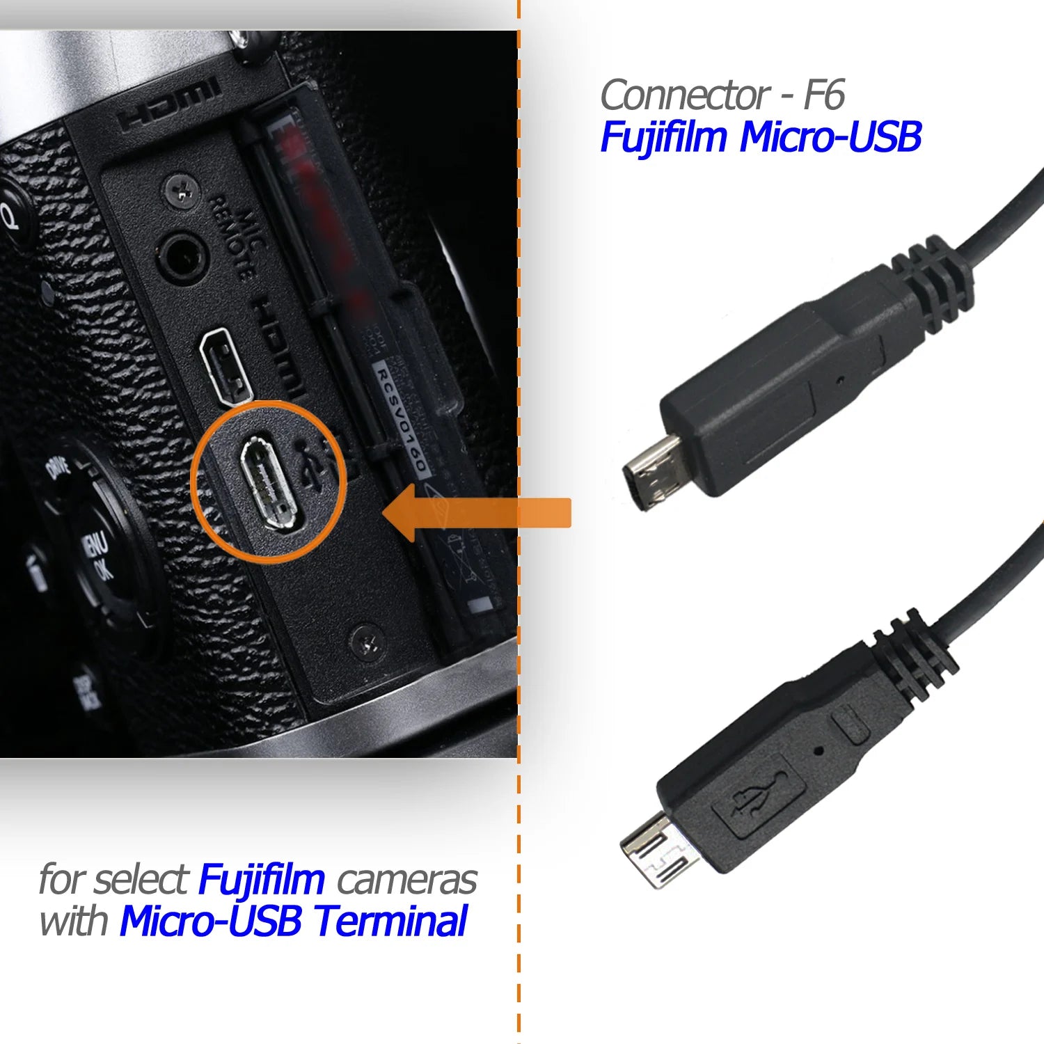 - Description: The F6 connector type is specific to Fujifilm DSLR cameras that feature a 2.5mm remote shutter release input. It ensures a reliable connection between the camera and the remote shutter release cable, enabling photographers to capture images remotely without disturbing the setup.
