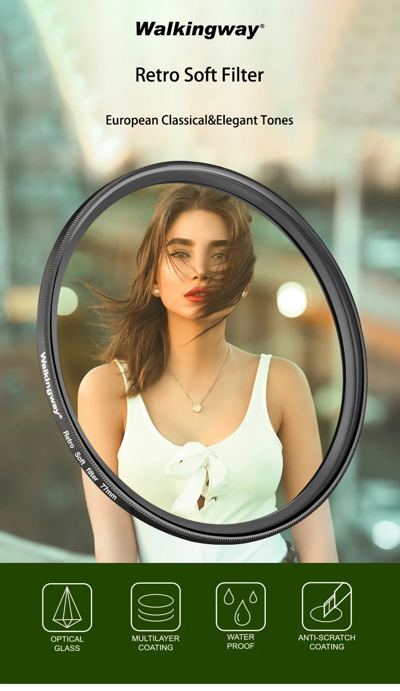 The Retro Soft Filter stands out due to its ability to produce unique, dreamy effects that are highly sought after in various photography genres. Its high-quality construction, multi-coated design, and versatile compatibility make it a valuable addition to any photographer's toolkit. Whether you're a professional photographer or an enthusiast looking to experiment with new techniques, this filter provides an easy and effective way to achieve stunning, soft-focus images.