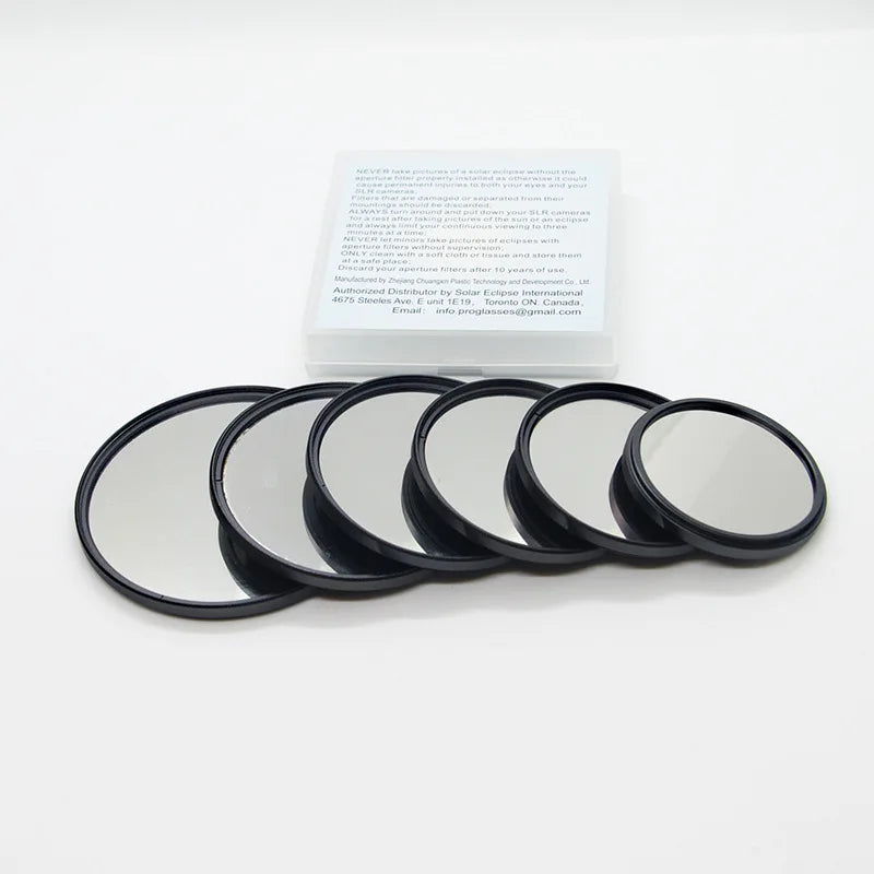 - Solar Film Camera Lens UV Mirror Filter: The filter size of your choice (52mm, 55mm, 58mm, 62mm, 67mm, 72mm, 77mm, or 82mm).