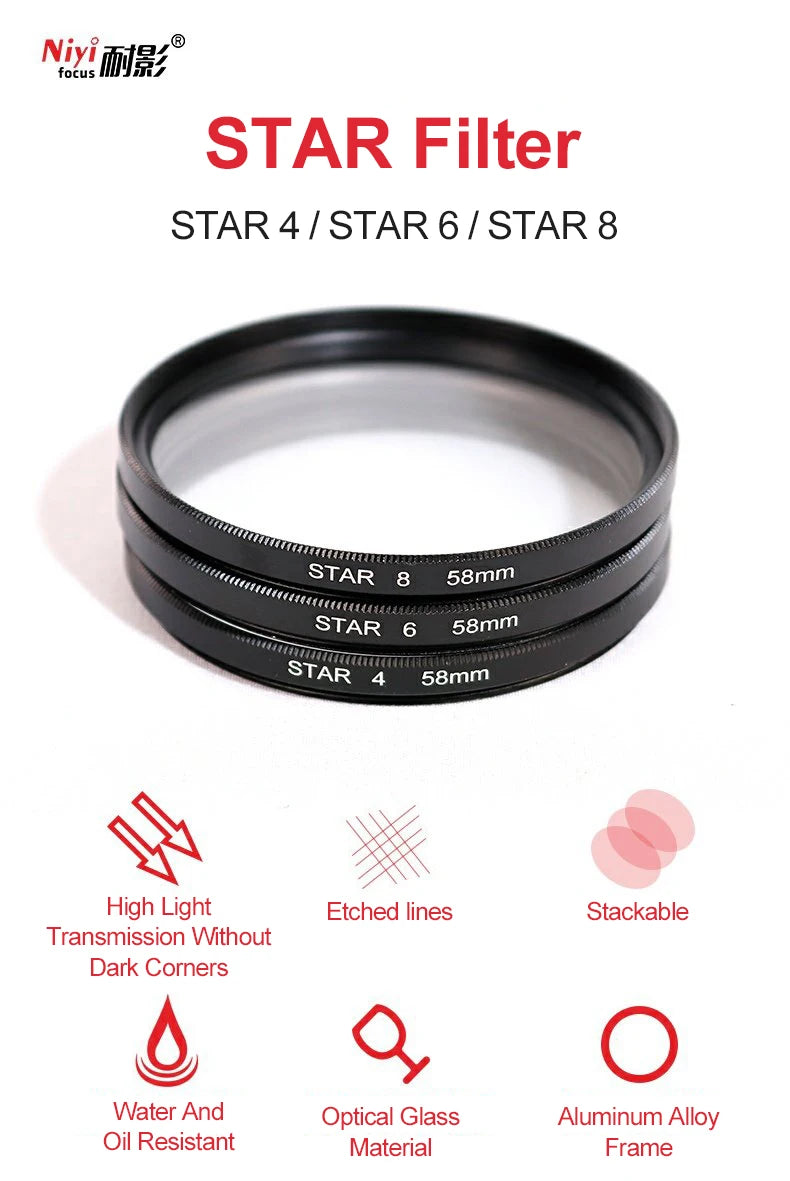- 1 x Star Line 4 6 8 Star Camera Lens Filter (selected size)