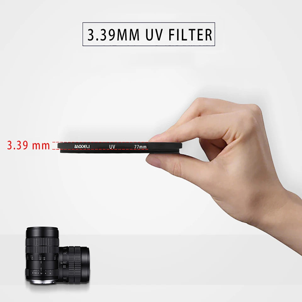 Compared to other UV filters on the market, the BAODELI UV Filter stands out due to its high-quality optical glass, 4-layer coating, and durable aluminum alloy frame. These features ensure superior performance and longevity, providing photographers with reliable protection and enhanced image quality. The filter's high transmittance rate of 99.3% ensures that most light passes through while effectively reducing UV rays, resulting in clearer and more vibrant photos.