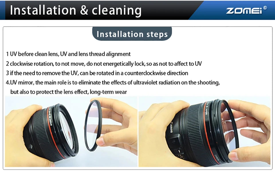 - Affordable Protection: Investing in a UV filter is a cost-effective way to protect your valuable camera lens. It serves as an inexpensive insurance policy against accidental damage and everyday wear and tear.