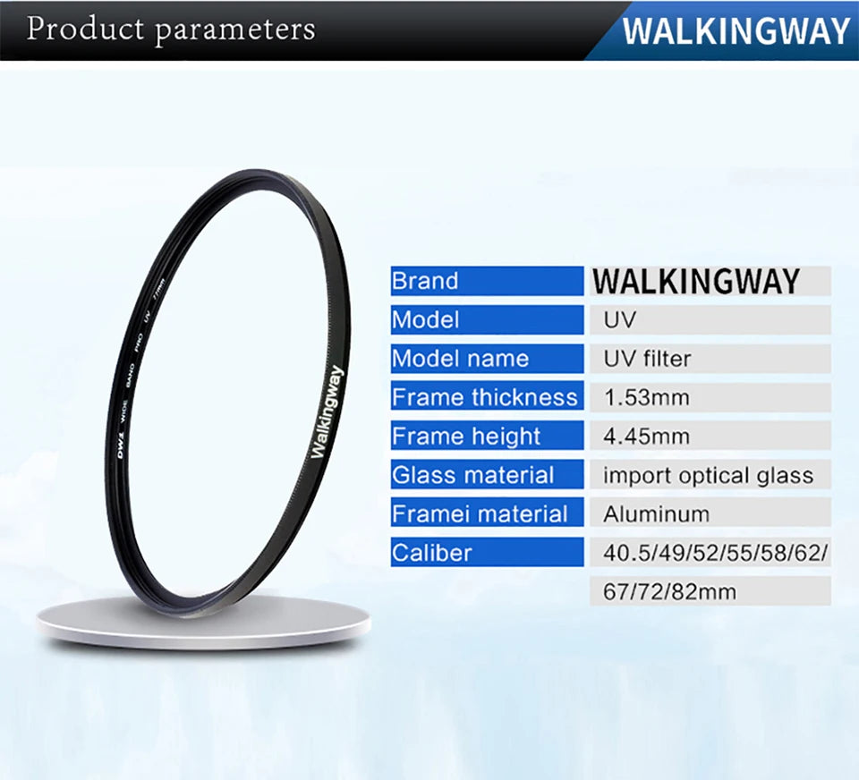 Whether you’re a professional photographer or an enthusiast, the Walkingway UV Lens Filter is your reliable partner in preserving lens quality and enhancing photographic results. With its robust construction, optical clarity, and protective benefits, it’s an essential addition to your camera gear. Choose the Walkingway UV filter for unmatched lens protection and superior image quality in every shot.